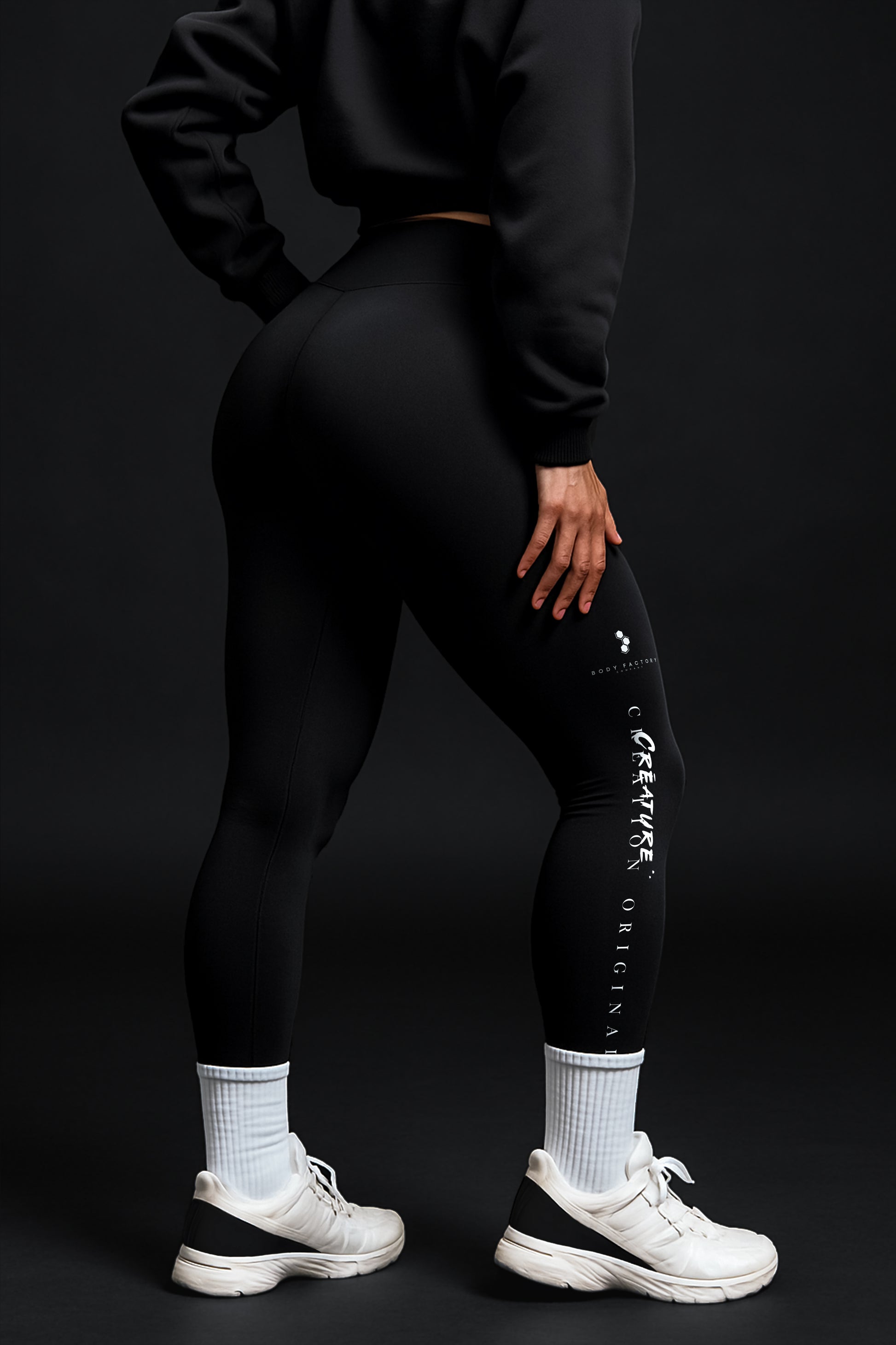 Le legging noir est un véritable classique, il a toujours une place de choix dans la garde-robe de la sportive mais si on lui ajoute le lourd design 'Créature Originale' alors il devient parfaitement indispensable pour se sentir inarrêtable, un véritable shoot de self-confidence en intra-veineuse. Tient parfaitement en place pour tes entraînements les plus intensifs.